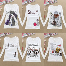 2017春装韩版女装长袖T恤批发初高中学生少女印花纯棉大码打底衫
