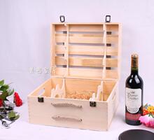 促销高档六支装松木红酒礼品包装盒葡萄酒木质包装箱批发
