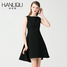 2017夏装新款优雅气质连衣裙女一字领收腰显瘦短裙漏肩宴会小黑裙