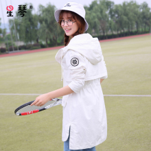 2017春秋装新款韩版 少女初中学生秋装宽松连帽中长款风衣外套潮