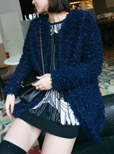 韩国秋冬新圈圈绒羊羔毛加厚保暖大口袋中长款毛绒大衣外套开衫女