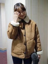 NENE韩国冬加厚羊羔毛毛茸茸保暖仿鹿皮绒驼色插袋长袖棉衣外套女