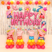 宝宝生日布置装饰背景墙布置用品舞台教室幼儿园小猪佩奇气球套餐
