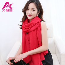 春夏秋季新款缎面女士纯色丝巾雪纺百搭长款围巾OL两用大披肩纱巾