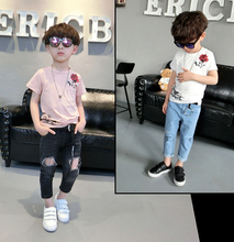 艾睿男童印花短袖T恤圆领儿童体恤童装白色粉色夏季男中童韩版棉