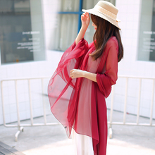夏季纯色防晒披肩丝巾女雪纺薄纱巾百搭小清新两用超大海边沙滩巾