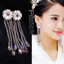 韩国欧美时尚耳环钉夹饰品性感流苏超长婚礼水钻流苏立体夜店耳线