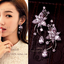 韩国欧美时尚耳环钉夹饰品名媛超闪纯情白水晶锆石镶嵌耳个性立体