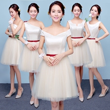 伴娘服短款2017新款伴娘团伴娘礼服香槟色小礼服姐妹裙毕业晚礼服