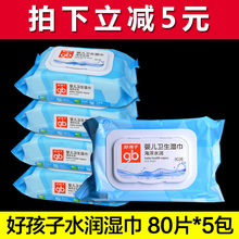 好孩子婴儿湿巾口手湿巾宝宝湿巾纸巾新生儿5包80抽带盖包邮正品