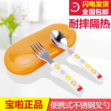 宝啦 儿童便携餐具 宝宝不锈钢吃饭勺子 婴儿叉子 外带叉勺盒套装