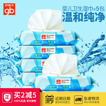 好孩子婴儿卫生湿巾宝宝手口PP湿纸巾带盖海洋水润湿巾5包新版