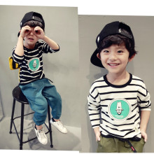 儿童长袖t恤男童条纹打底衫圆领春装2017新款中大童男孩体恤童装