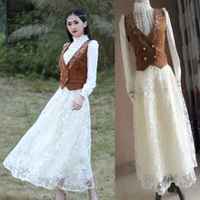 夏装新款复古全蕾丝绣花复古文艺民国学生仙女气质长裙三件套装