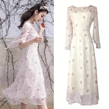 2017夏装新款大叔家郁金香复古少女印花连衣裙文艺仙女长裙热卖
