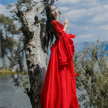 夏装新款复古时尚宫廷仙女飘逸连衣裙大红喇叭袖大摆度假气质长裙