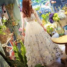 2017夏季新款复古名媛仙女立体蝴蝶长裙度假裙气质连衣裙毕业礼服