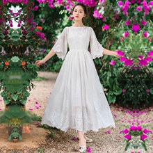 夏装新款文艺淑女复古重工镂空刺绣大摆蕾丝连衣裙名媛气质长裙