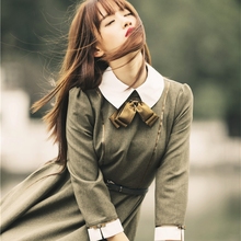 2017夏装新款民国风复古文艺淑女小清新学院学生连衣裙英伦长裙