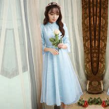 2017夏装新款民国风复古文艺欧根纱仙女长裙学生连衣裙热卖