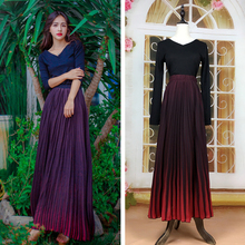 2017夏装新款名媛气质V领百褶半身裙两件套渐变长裙显瘦波西米亚