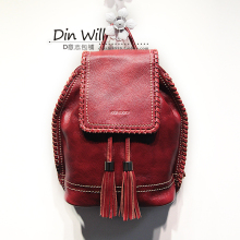 D意志 2017欧美时尚新款高品质头层牛皮双肩背包 真皮 流苏女包