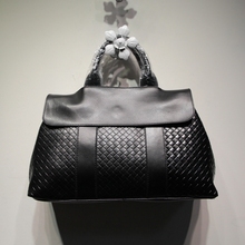 D意新款潮时尚女士头层牛皮斜跨单肩包手提包压花编织纹真皮女包