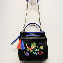 Din 2017新款高品质刺绣工艺羊皮手提女包精品单肩链条水桶包小真