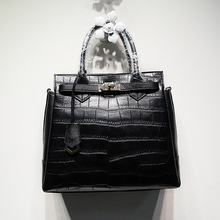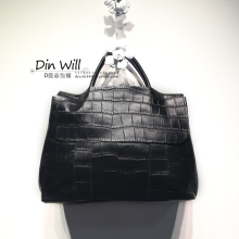 D意志定制 欧美撞色鳄鱼纹压花手提女包时尚蛇纹牛皮单肩包
