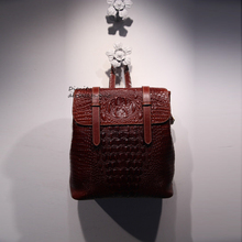 D意志 2016欧美时尚超鳄鱼纹压花头层牛皮双肩包真皮女背包