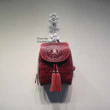 D意志 2016欧美新款时尚鳄鱼纹高品质定型双肩包头层牛皮流苏背包