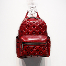 Din定制 高品质头层牛皮双肩包四叶草压花休闲小资系背包真皮
