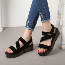2017夏季新款平跟松糕厚底凉鞋女鞋平底中跟韩版百搭学生罗马鞋子