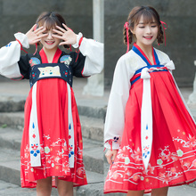 现货2017青丘夜雪月扇香汉元素古装短齐胸襦裙刺绣印花软萌四件套