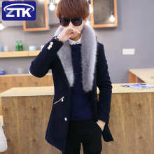 春季男士毛领风衣韩版修身非主流男装学生外套春天个性衣服潮大衣