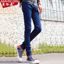 曼哈森2016冬季保暖男装深蓝色加绒牛仔裤潮男加厚保暖小脚裤子
