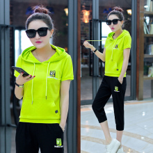 2017夏季新款女装时尚休闲运动服套装韩版短袖九分裤连帽两件套潮