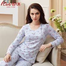 意大莱正品牌全纯棉内衣女士秋衣秋裤基础打底印花内衣套装棉毛衫
