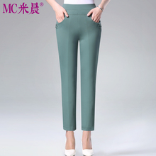 夏装裤子春秋中老年女裤妈妈九分裤春装中年长裤女松紧大码夏薄款