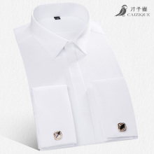 才子雀纯棉免烫男士长袖衬衣修身纯色全棉商务结婚法式袖扣衬衫