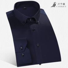 才子雀男式商务衬衫丝光棉长袖衬衫修身款商务休闲衬衣藏青色寸衫