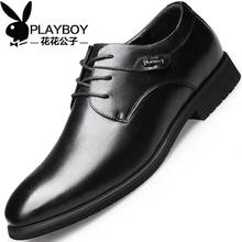 花花公子男鞋夏季潮鞋男士商务正装皮鞋英伦黑色真皮厚底男婚鞋子