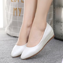 春季单鞋女真皮OL平底浅口尖头护士皮鞋内增高女鞋坡跟软底工作鞋