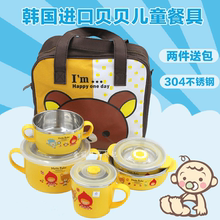 韩国进口儿童餐具套装宝宝不锈钢饭碗勺叉筷水杯饭盒小学生便当盒