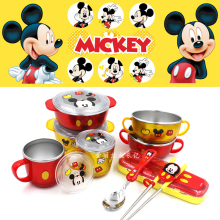 韩国进口迪士尼儿童餐具套装米奇宝宝饭碗婴幼儿辅食碗不锈钢