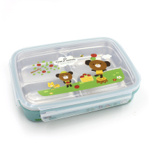 韩国摩卡小熊儿童餐盘 分格 不锈钢小学生饭盒便当盒宝宝餐具进口