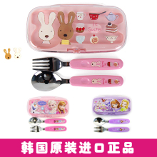 韩国进口宝宝勺叉套装便携盒子儿童餐具勺子叉子迪士尼砂糖兔