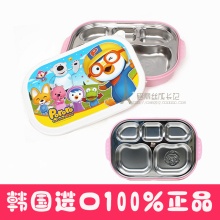 韩国进口儿童餐具pororo小企鹅餐盒宝宝餐盘 分格小学生饭盒便携