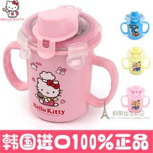 韩国进口正品hello kitty儿童水杯宝宝吸管杯带手柄防漏水壶