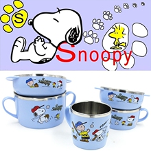 韩国进口儿童餐具snoopy 史努比餐具宝宝不锈钢碗套装勺筷杯